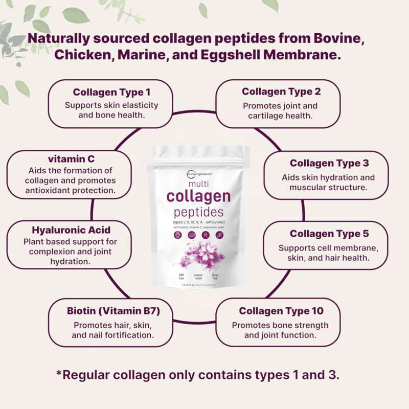 Micro Ingredients Multi Collagen Peptides Powder, 16oz | Full Spectrum Type I, II, III, V, X + Biotin, Hyaluronic Acid, & Vitamin C | Unflavored | Keto & Paleo Friendly | Non-GMO